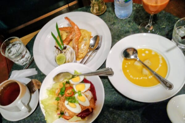 こんにちは!ジュリコです🙏✨ バンコク3泊4日の社員旅行を満喫してきました〜✈️ 私にとっては初タイです🏝️🍍 ジュリコは寺院観光とグルメを中心に 楽しんできましたー!! 特に思い出に残ったグルメを2つ🍗 ①The Deck by Arun Residenceのポメロサラダ!!食べるのに夢中で全体写真しか撮れてません💦💦 ポメロサラダとは エビとポメロ (グレープフルーツやザボンのようなフルーツ) を合わせたサラダなのですが ドレッシングがピリカラで ほんのり甘みもあり エビとポメロのフレッシュ感が 口の中で弾ける!! 美味しすぎる!! ここのお店で食べれてよかった!!😆