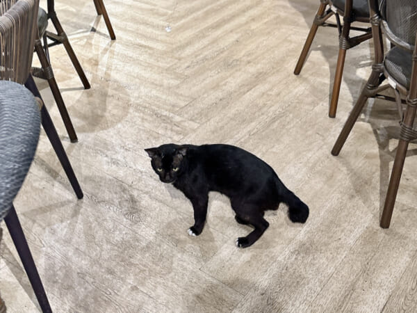 外からやってきて、当たり前のように店内をうろちょろしていた黒猫ちゃん。