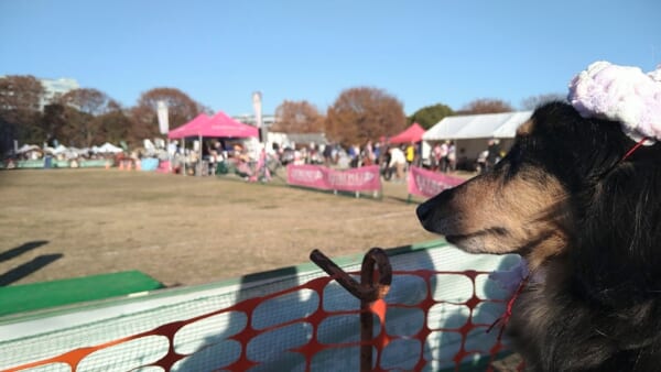 こんにちは!ジュリコです✨ 先日は我が家のジュリちゃんをつれて スピード感あふれるカッコイイわんこさんたちの エクストリーム大会を見にいきました! ジュリちゃんもしっかり観戦しています?おやおや・・・ずっと寝ていますね?