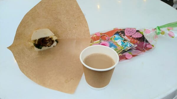 こちらもかなり個性的! チャイとマントウで小腹を満たします🧋 マントウ→肉まんと思って注文したら ナナメ上いくビジュアルです! フードまでオシャレ!!