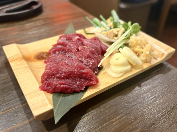 馬刺しの聖地・熊本県から産地直送で仕入れた新鮮な馬刺しと……