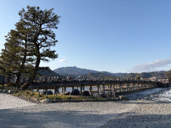 普段は着慣れない靴は訓練が必要ですね。 まだお店の前だというのにもう体力が3分の1くらい削れました笑 気を取り直して最初に向かったのが「渡月橋」